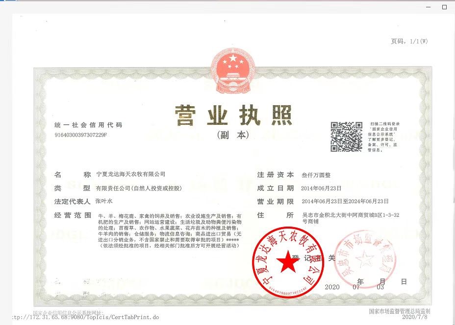 寧夏龍達(dá)海天農(nóng)牧有限公司 此公司營業(yè)執(zhí)照已上傳驗(yàn)證
